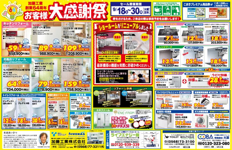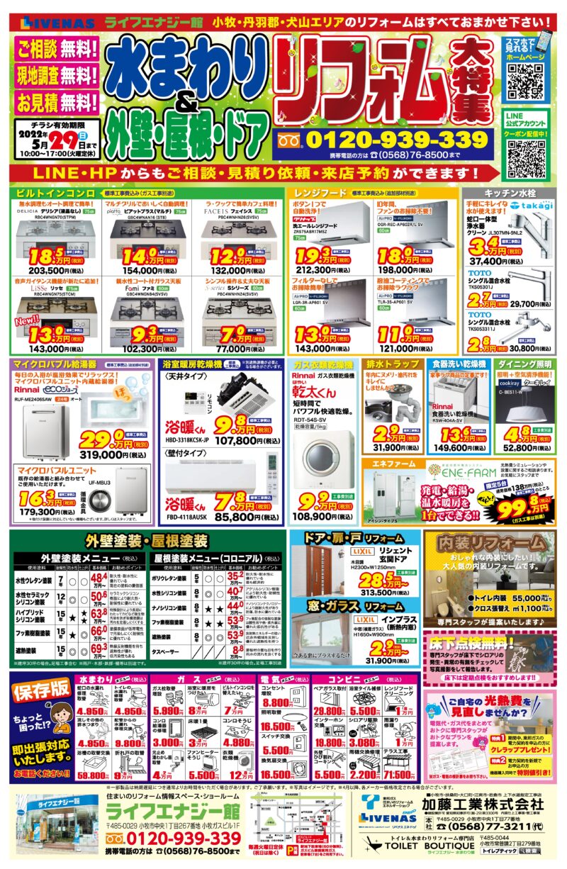 愛知県小牧市のリベナスエネドゥ「加藤工業株式会社」はリフォーム・水道工事等を取り扱っております。