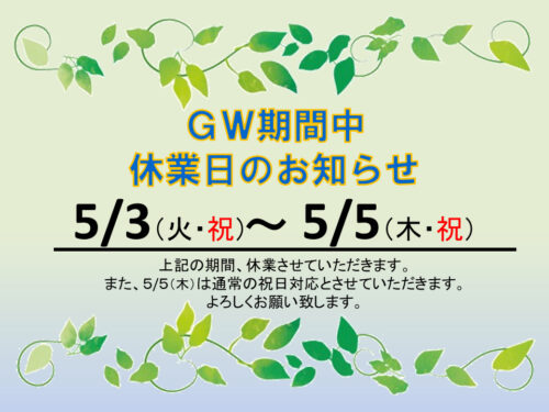 5/3(火・祝)~5/4(水・祝)の二日間は、本社・ショールーム共に全社休業